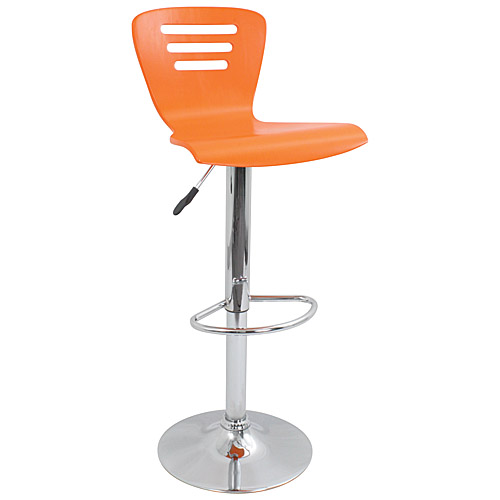 Features a chrome base and a hydraulic lift to adjust the seat height from 23 to 32 inches.